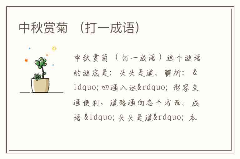 谜面“中秋赏菊”的谜底是 花好月圆。