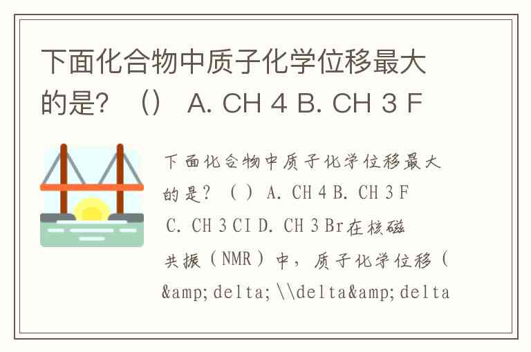 下面化合物中质子化学位移最大的是?() A. CH 4 B. CH 3 F C. CH 3 CI D. CH 3 Br