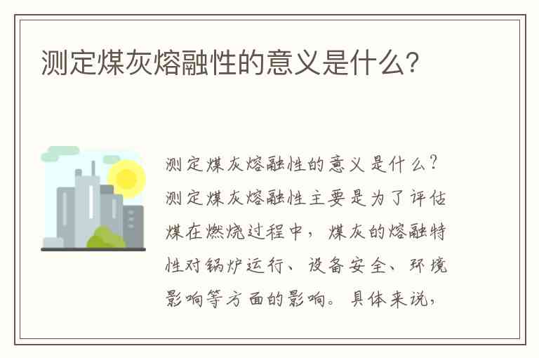 测定煤灰熔融性主要是为了评估煤在燃烧过程中,煤灰的熔融特性对锅炉运行、设备安全、环境影响等方面的影响。具体来说,测定煤灰熔融性具有以下几个重要意义: