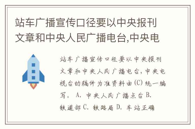 站车广播宣传口径要以中央报刊文章和中央人民广播电台,中央电视台的稿件为准资料由(C)统一编写。 A. 中央人民广播点台 B. 铁道部 C. 铁路局 D. 车站