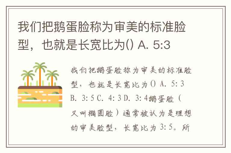 我们把鹅蛋脸称为审美的标准脸型,也就是长宽比为() A. 5:3 B. 3:5 C. 4:3 D. 3:4