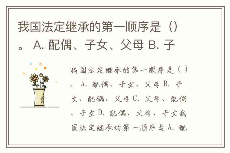 我国法定继承的第一顺序是 A. 配偶、子女、父母。