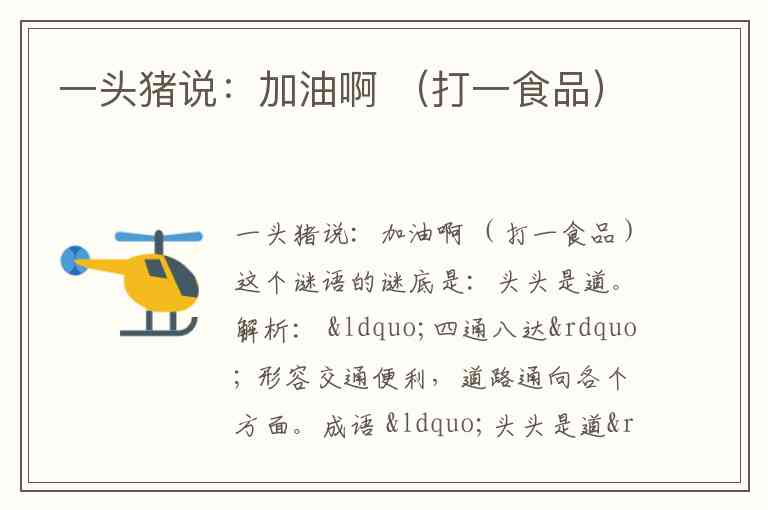 这个谜语的巧妙之处在于,通过猪说话的场景和谐音转换,把一句日常鼓励语变成了一个有趣的食品名称。