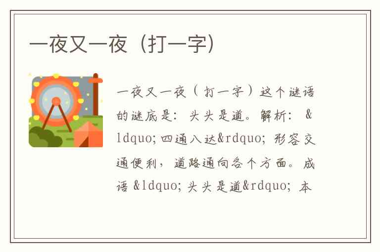 “一夜”解析:“一夜”指的是一个晚上。在汉字中,“夜”可以同义转换为“夕”(指傍晚、夜晚)。