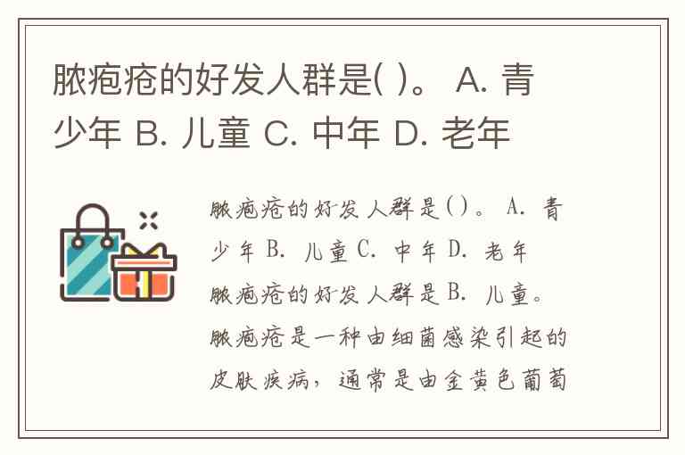 脓疱疮的好发人群是( )。 A. 青少年 B. 儿童 C. 中年 D. 老年