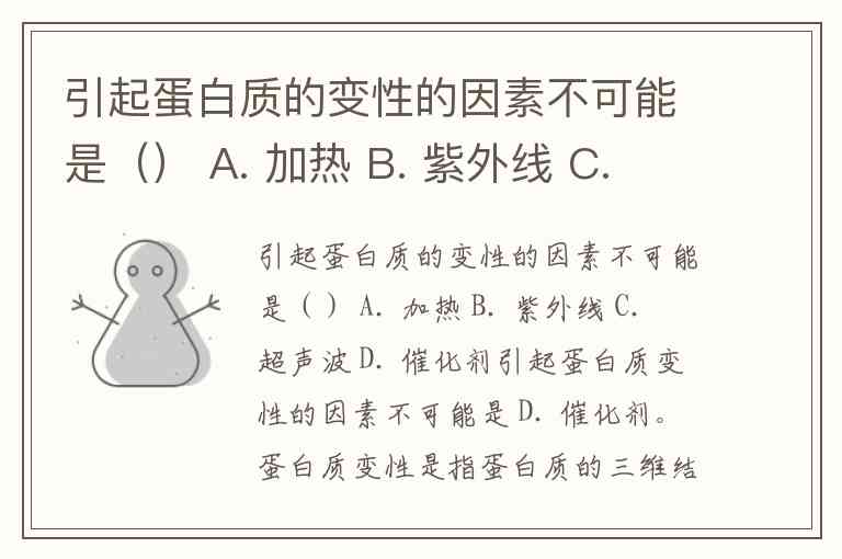 而 催化剂 不会直接引起蛋白质变性,它通常作为化学反应的加速剂,不改变反应物本身的结构,因此它不应该被视为蛋白质变性的因素。