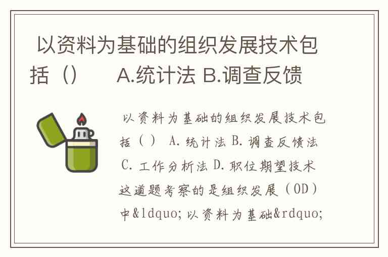 这道题考察的是组织发展(OD)中“以资料为基础”的干预技术。这类技术的特点是,通过系统性地收集数据、分析数据,并将结果反馈给相关人员,从而引发组织的讨论和变革。