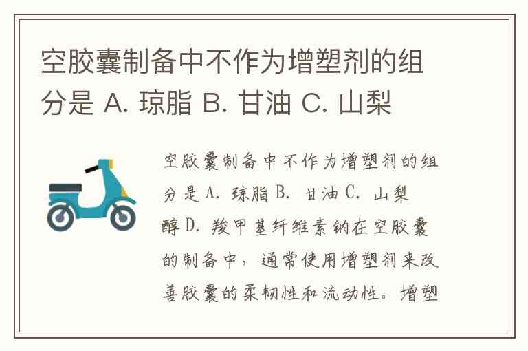 空胶囊制备中不作为增塑剂的组分是 A. 琼脂 B. 甘油 C. 山梨醇 D. 羧甲基纤维素钠