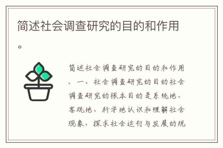 描述状况:通过收集资料,客观、准确地描绘社会现象的基本状况、特征与分布。例如,描述一个社区的人口结构、收入水平或公众对某项政策的看法。这是最基础的目的。