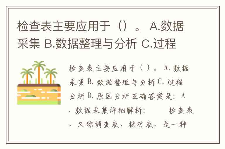 因此,检查表最主要、最直接的应用是 A. 数据采集。