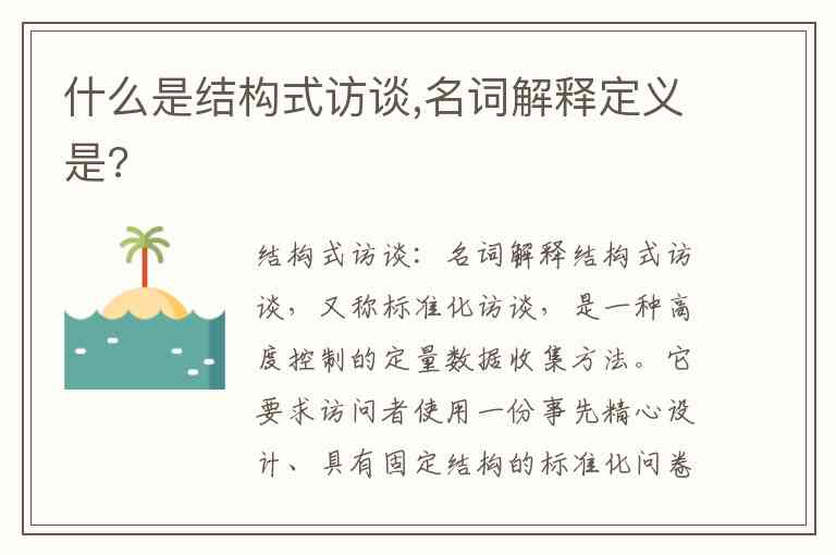 结构式访谈,又称标准化访谈,是一种高度控制的定量数据收集方法。它要求访问者使用一份事先精心设计、具有固定结构的标准化问卷,严格按照问卷中的问题顺序、措辞和提问方式向受访者进行提问,并且通常只为受访者提供一套标准化的、预设的答案选项供其选择。