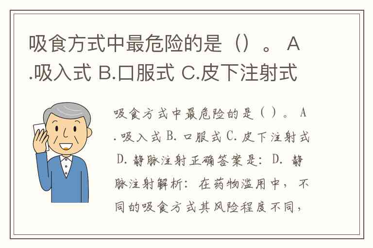 在药物滥用中,不同的吸食方式其风险程度不同,但静脉注射被公认为是最危险的方式。原因如下: