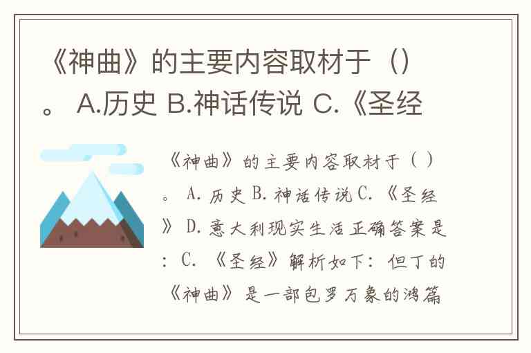 虽然其他选项也构成《神曲》的重要内容,但它们并非主要取材来源: