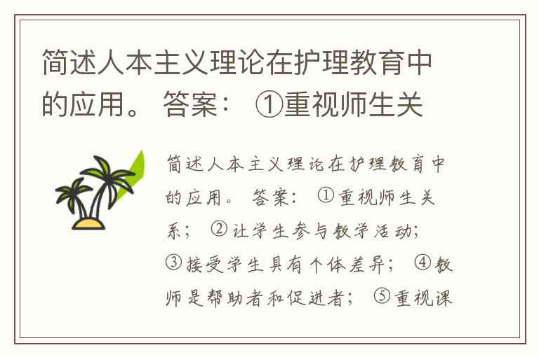 总结:人本主义理论在护理教育中的应用,其根本目标是将护生培养成为一个不仅具备扎实专业知识和技能,更能实现自我成长、具有同理心和人文关怀精神的完整的人,从而更好地践行“以病人为中心”的整体护理理念。