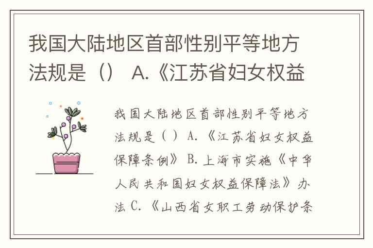 这道题主要考察的是我国地方性法规在推动性别平等方面的里程碑事件。为了帮助你更好地理解,这里有一个简要的说明: