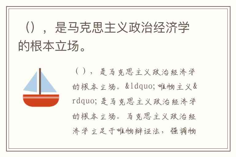 “唯物主义”是马克思主义政治经济学的根本立场。马克思主义政治经济学立足于唯物辩证法,强调物质生产和社会关系对人类历史发展的决定性作用,认为经济基础决定上层建筑,阶级斗争是推动历史进步的主要动力。