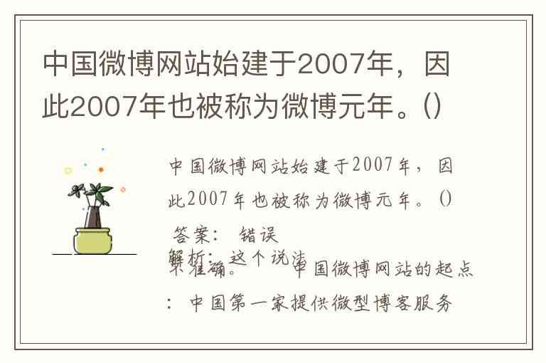 中国微博网站始建于2007年,因此2007年也被称为微博元年。() 答案: 错误