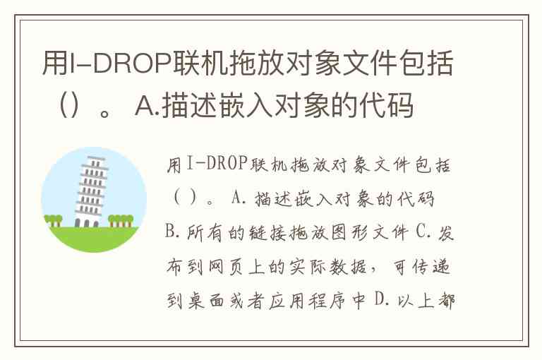 I-DROP联机拖放对象文件的核心就是可供拖放的实际数据,因此正确答案是 C。