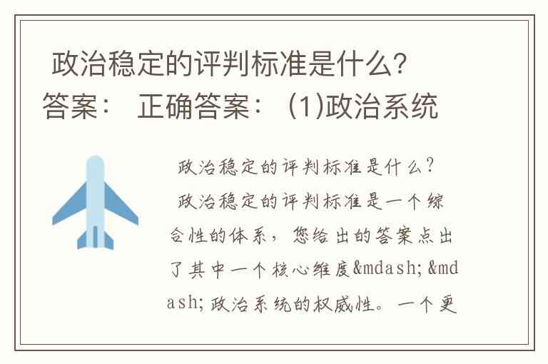 政治稳定的评判标准是一个综合性的体系,您给出的答案点出了其中一个核心维度——政治系统的权威性。一个更全面、学术化的评判标准通常包括以下几个维度:
