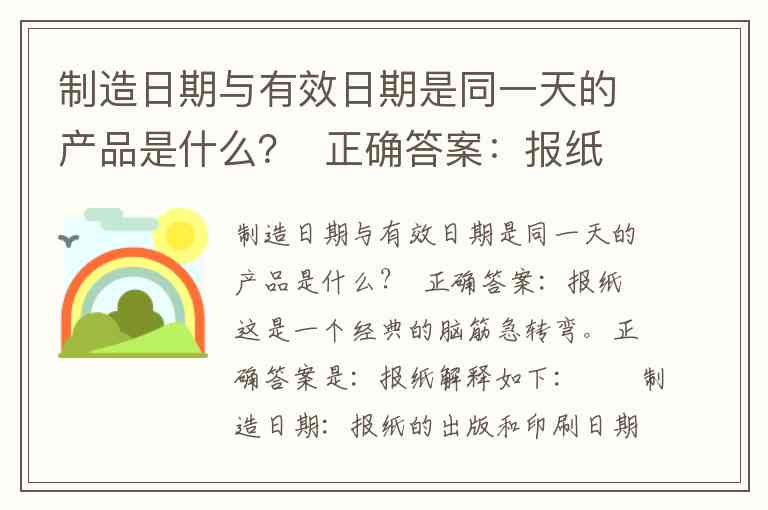 制造日期:报纸的出版和印刷日期,也就是它被“制造”出来的那一天。