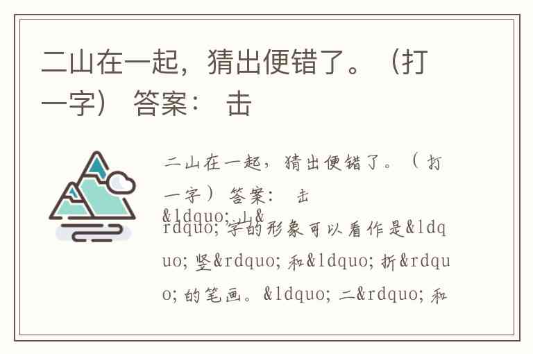 谜面用“猜出便错了”排除了所有常规的“山”字组合,引导我们去想一个笔画重组后的字。因此,谜底是 击。