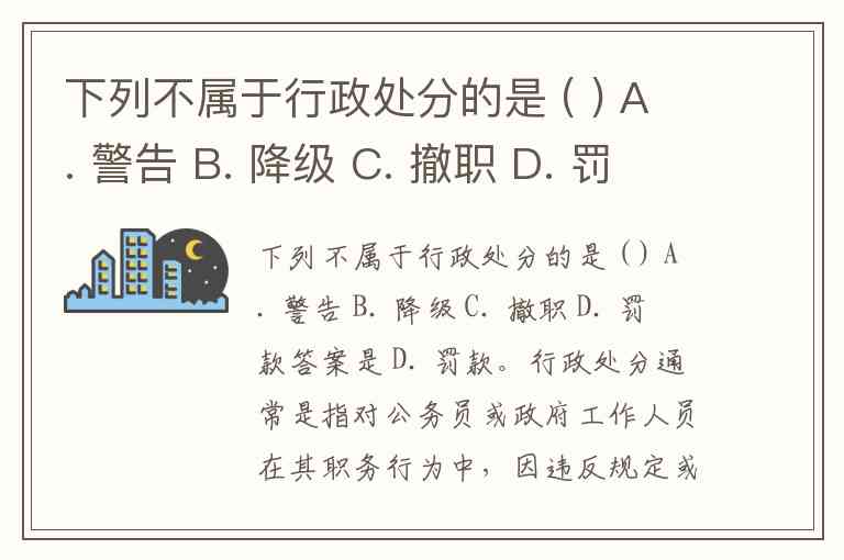 下列不属于行政处分的是 ( ) A. 警告 B. 降级 C. 撤职 D. 罚款