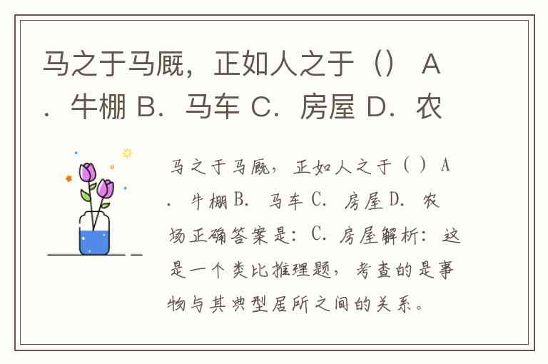 马 和 马厩 的关系是:马厩是马居住、休息的场所。