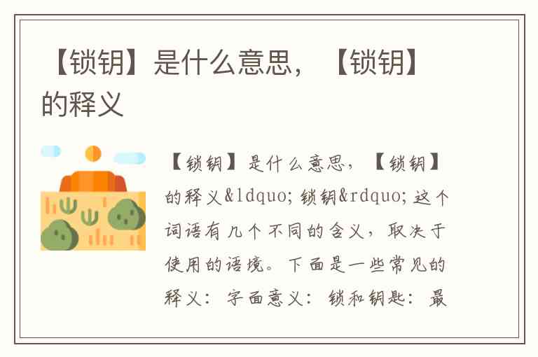 “锁钥”这个词语有几个不同的含义,取决于使用的语境。下面是一些常见的释义: