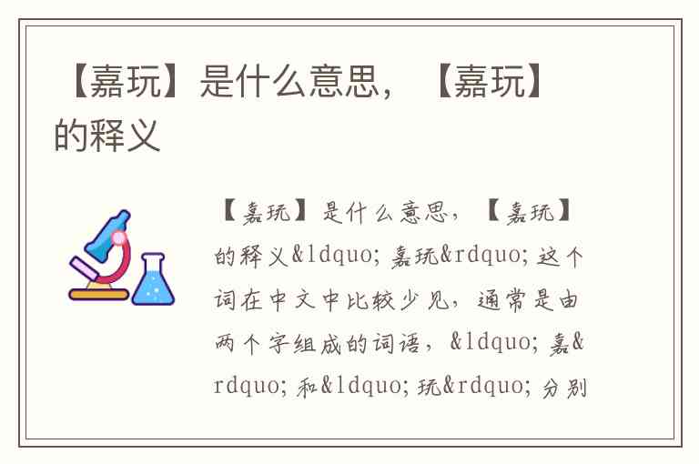 “嘉玩”这个词在中文中比较少见,通常是由两个字组成的词语,“嘉”和“玩”分别有各自的意义。