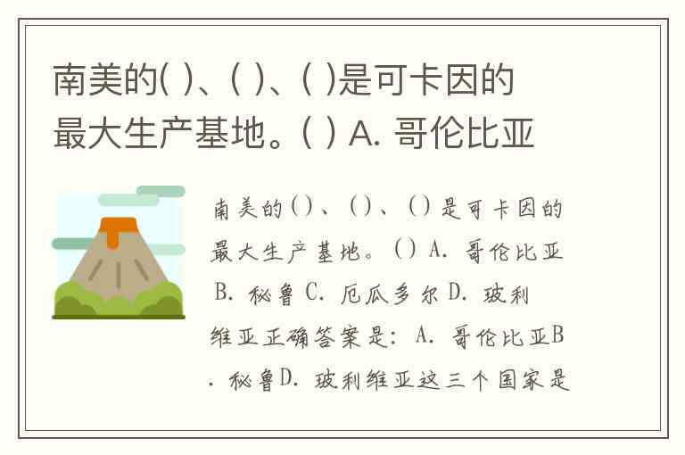 南美的( )、( )、( )是可卡因的最大生产基地。( ) A. 哥伦比亚 B. 秘鲁 C. 厄瓜多尔 D. 玻利维亚
