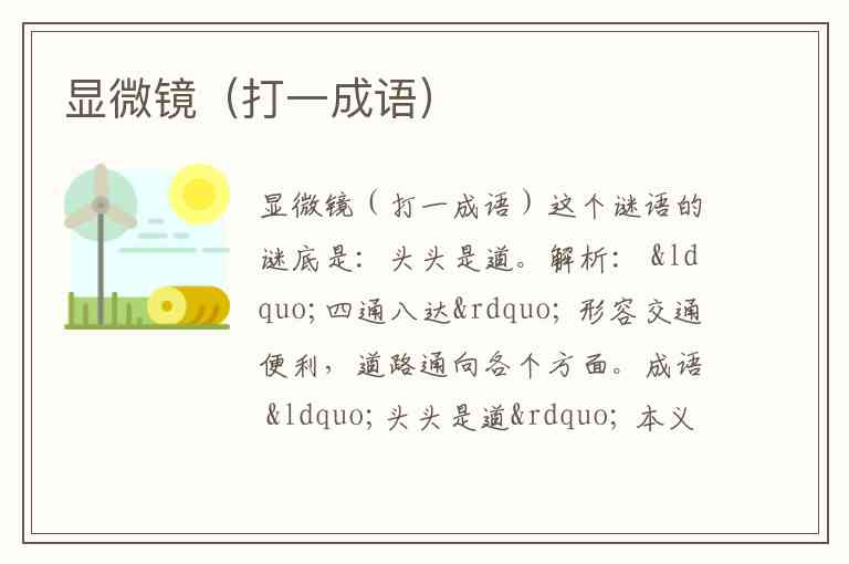 根据谜面“显微镜”打一成语,谜底是 一孔之见。