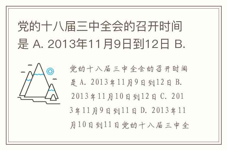 党的十八届三中全会的召开时间是 A. 2013年11月9日到12日 B. 2013年11月10日到12日 C. 2013年11月9日到11日 D. 2013年11月10日到11日