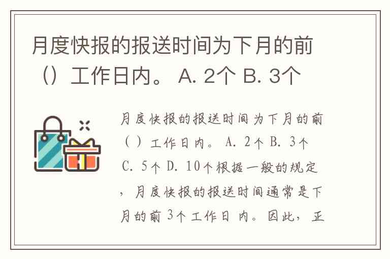 月度快报的报送时间为下月的前()工作日内。 A. 2个 B. 3个 C. 5个 D. 10个