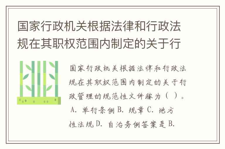 国家行政机关根据法律和行政法规在其职权范围内制定的关于行政管理的规范性文件稼为( )。 A. 单行条例 B. 规章 C. 地方性法规 D. 自治务例