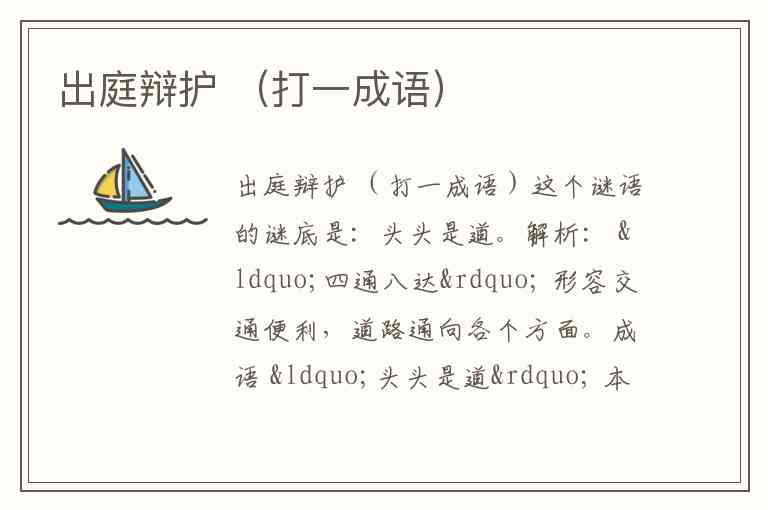这个谜语的解法非常直接,关键在于对“出庭辩护”这个行为的字面意思进行成语化转换: