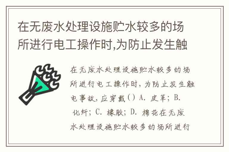 在无废水处理设施贮水较多的场所进行电工操作时,为防止发生触电事故,应穿戴( ) A. 皮革; B. 化纤; C. 橡胶; D. 棉花