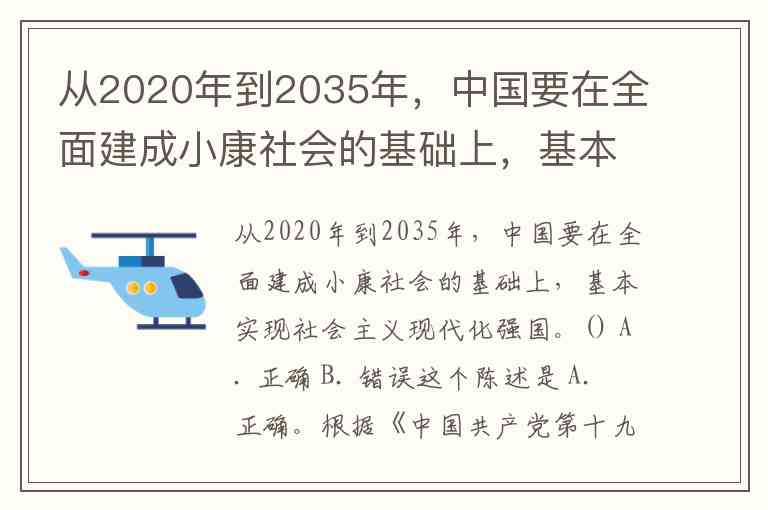 从2020年到2035年,中国要在全面建成小康社会的基础上,基本实现社会主义现代化强国。() A. 正确 B. 错误