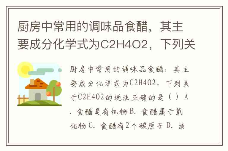 根据你提供的信息,C2H4O2 是食醋的主要成分,它的化学式表示了其中含有的元素及其数量。我们逐项分析这些选项: