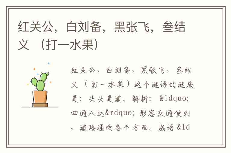 谜面“红关公,白刘备,黑张飞,叁结义”是在描绘三国演义中的经典结义场景,但实际对应的是荔枝的特征: