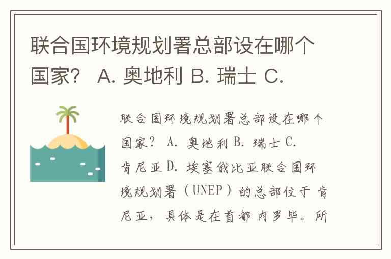 联合国环境规划署总部设在哪个国家? A. 奥地利 B. 瑞士 C. 肯尼亚 D. 埃塞俄比亚