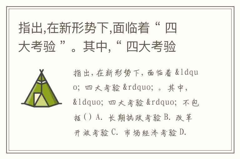 指出,在新形势下,面临着 “ 四大考验 ” 。其中, “ 四大考验 ” 不包括( ) A. 长期执政考验 B. 改革开放考验 C. 市场经济考验 D. 外部环境考验