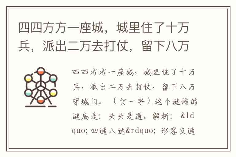四四方方一座城,城里住了十万兵,派出二万去打仗,留下八万守城门。 (打一字)