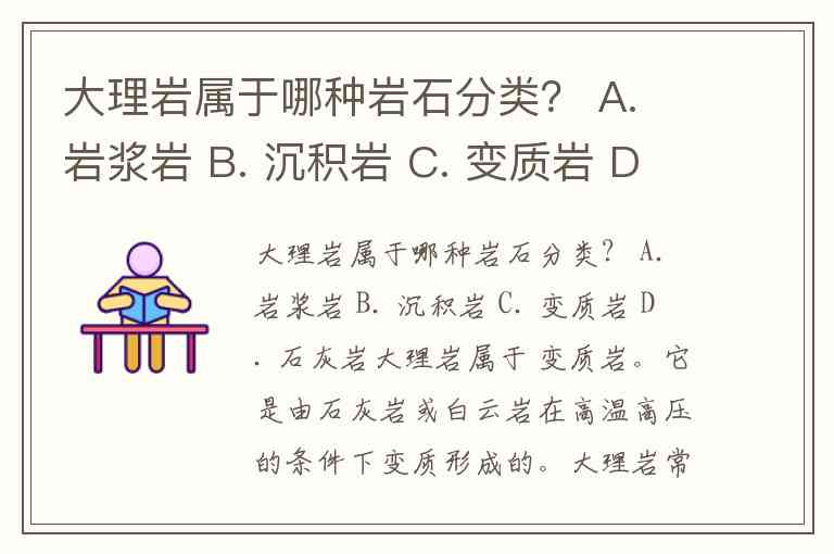 大理岩属于哪种岩石分类? A. 岩浆岩 B. 沉积岩 C. 变质岩 D. 石灰岩