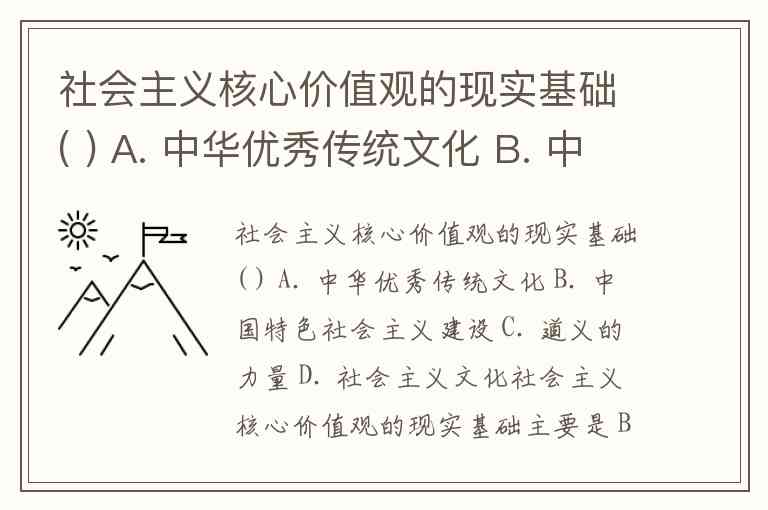 社会主义核心价值观的现实基础( ) A. 中华优秀传统文化 B. 中国特色社会主义建设 C. 道义的力量 D. 社会主义文化