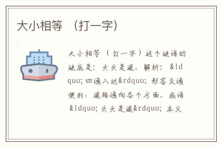 “相等”:意为两者一样、等同。在字形组合上,可以将“大”和“小”视为两个部分进行拼合。