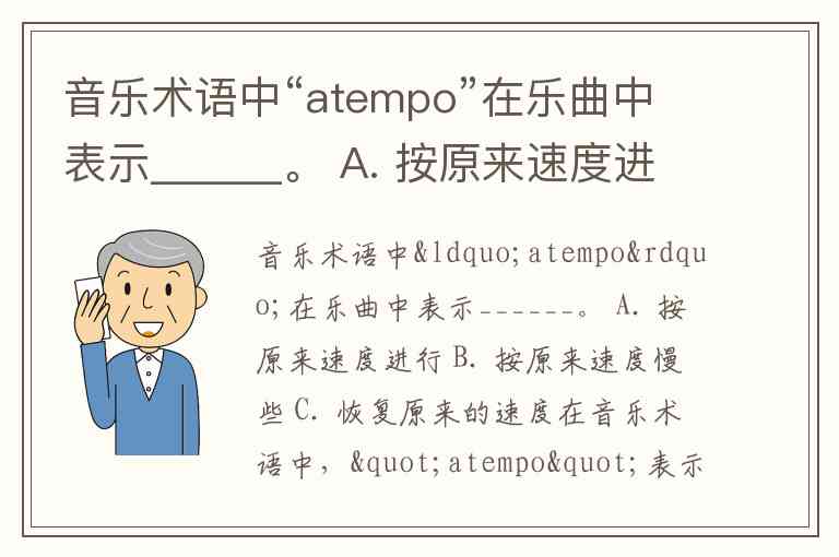 音乐术语中“atempo”在乐曲中表示______。 A. 按原来速度进行 B. 按原来速度慢些 C. 恢复原来的速度