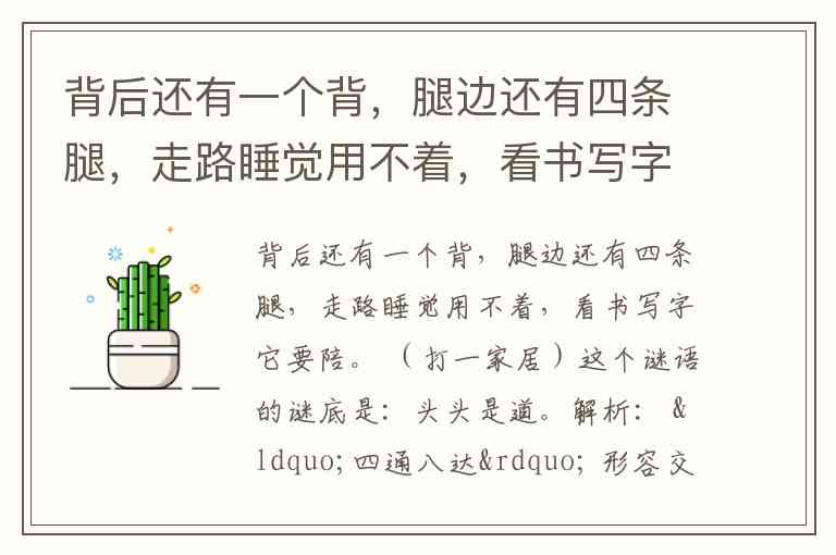 背后还有一个背,腿边还有四条腿,走路睡觉用不着,看书写字它要陪。 (打一家居)