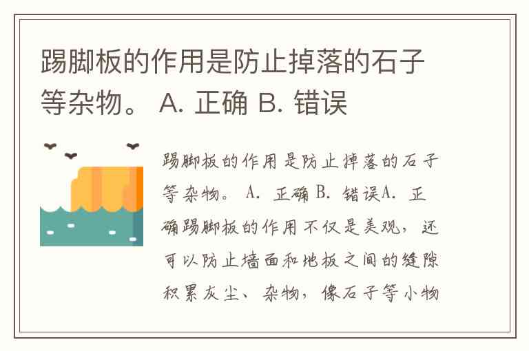 踢脚板的作用是防止掉落的石子等杂物。 A. 正确 B. 错误