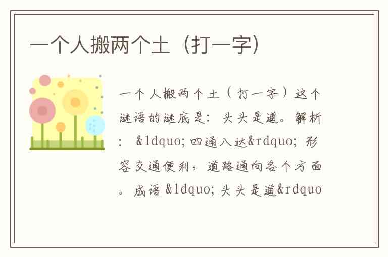 还有一种解法是:“两个土”直接视为“圭”,而“搬”暗示了结构的调整,最终形成“佳”字。这个谜语通过简单的动作描述,巧妙地拆解了“佳”字的构成。