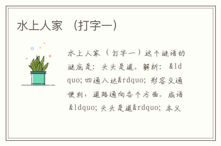 所以,谜面通过描述一种生活状态,巧妙地指向了与之相关的汉字“沪”。
